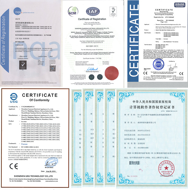 C: Evet, Canroon yüksek frekanslı indüksiyon ısıtma makinesi CE ve ISO9001 sertifikasına sahiptir.